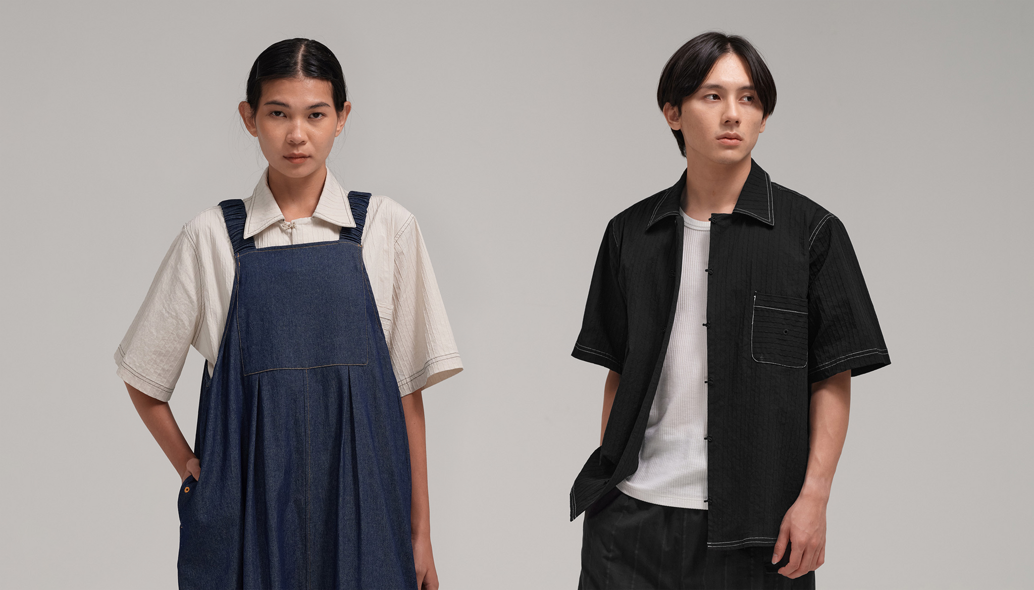 "Idiosyncratic. Japanese-inspired quirky androgynous but highly wearable unisex styles. Natural colour soothing Zen palette. Clothing veer towards deconstructed silhouettes."